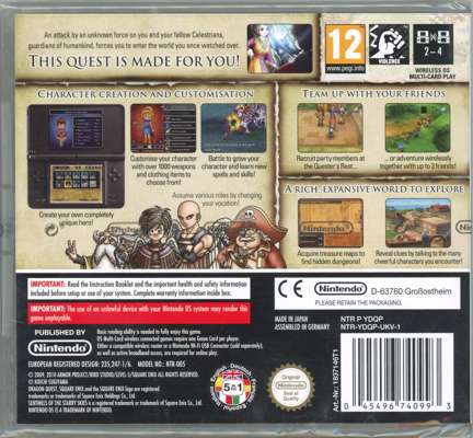 This lot contains a factory sealed copy of Dragon Quest IX Sentinels of the Starry Skies for the Nintendo DS. This game is for the PAL region/territory.