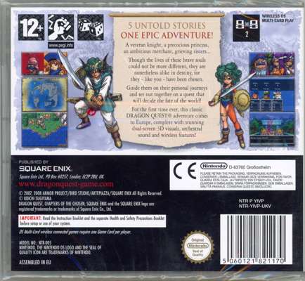 This lot contains a factory sealed copy of Dragon Quest The Chapters of the Chosen for the Nintendo DS. This game is for the PAL region/territory.