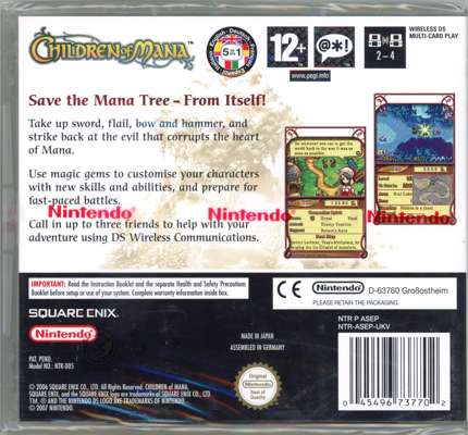 This lot contains a factory sealed copy of Children of Mana for the Nintendo DS. This game is for the PAL region/territory.