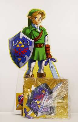 This lot features the official standee/point of sales material supplied to videogame stores for The Legend of Zelda Ocarina of Time on the 3DS - The item is complete in box and in its originally packaging. The item features the full 3D standee in great condition, and in parts still in its original wrapping.