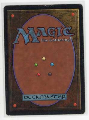 In addition to typical wear, the top border of this card has received some impact damage at some point in its life, and as such has rolled slightly causing a series of creases. The card is still largely sleeve playable and looks great for the age.