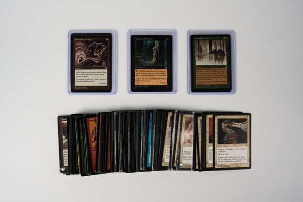 Highlights include: Sliver Queen (EX+, minor ding in BR corner but otherwise lovely), Ensnaring Bridge, Dream Halls, hermit Druid, Constant Mists