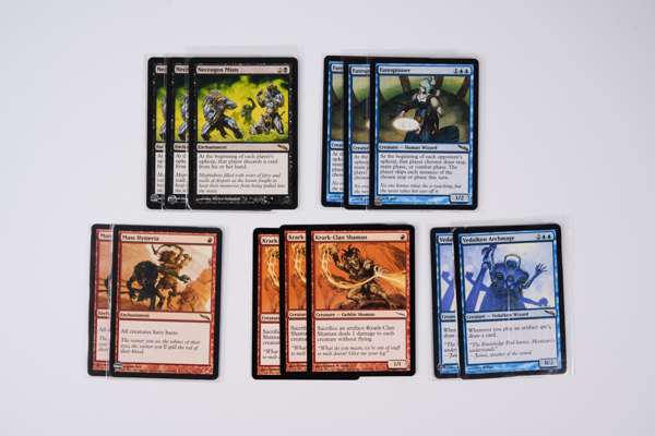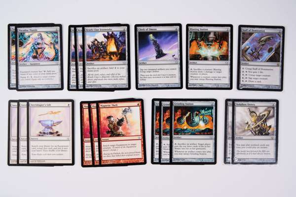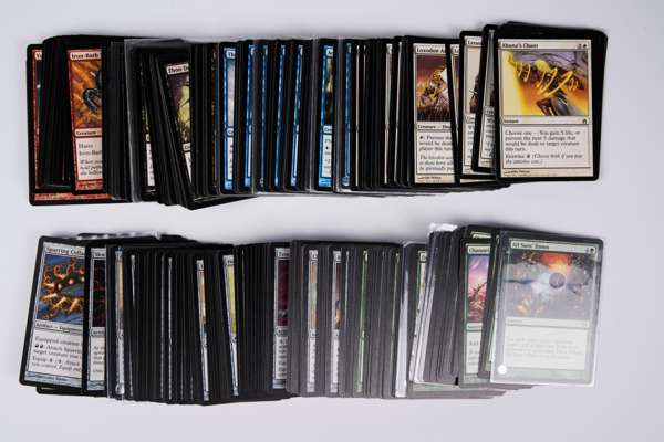 This collection contains cards from across the Mirrodin block: Mirrodin, Dark Steel, and Fifth Dawn. These are partially completed sets with many cards missing, but this lot offers a fantastic opportunity to get your hands on a collection of powerful cards from one of Magic’s most iconic eras. Condition of cards is mostly in the Excellent (EX) to Near Mint (NM) range. Plenty of great cards, including: x2 Trinisphere, Isochron Scepter, x3 Krark-Clan Ironworks, x2 Vedalkan Archmage, x3 Krark’s Thumb, x3 Skullclamp, x3 Krark-Clan Shaman, x2 Grinding Station, and much more.