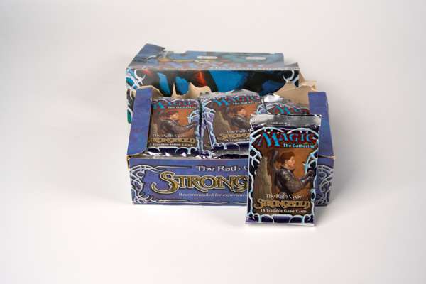 This lot features x31 sealed booster packs of the Stronghold expansion in new/unused condition. Also included is a very tatty cardboard sleeve that these packs originally came in.