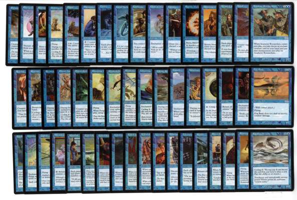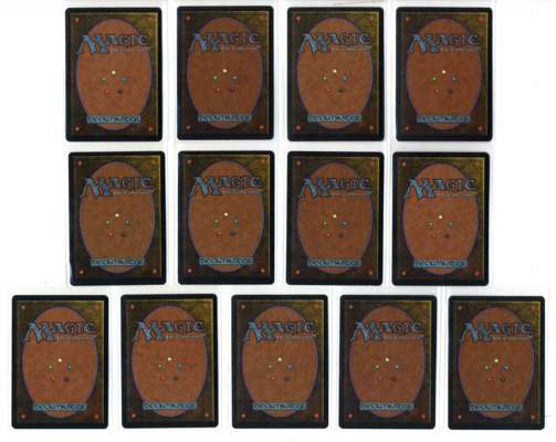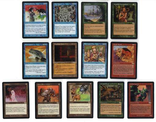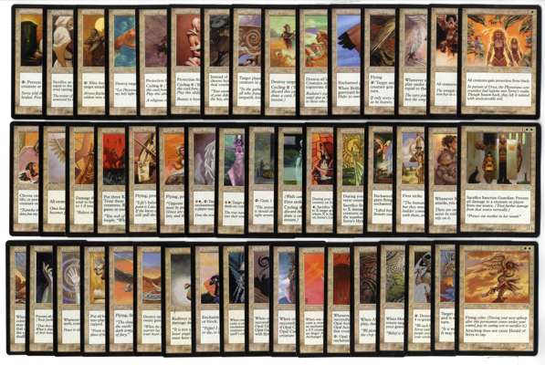 This lot features a very nearly complete set of Urza's Saga, Magic' 15th expansion released October 1998. Only three cards are missing: Serra Avatar, Morphling, and Stroke of Genius.
