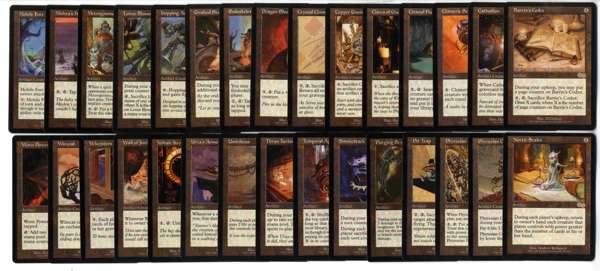 Gaea's Cradle (EX, light spots of dirt/wear), Tolarian Academy (LP, dented), Argothian Enchantress (EX+), Exploration (GD), Timespiral (EX), Phyrexian Tower (NM), Yawgmoth's Will (EX+), Gilded Drake (EX), Back to Basics (NM), Serra's Sanctum (GD), and so many more.