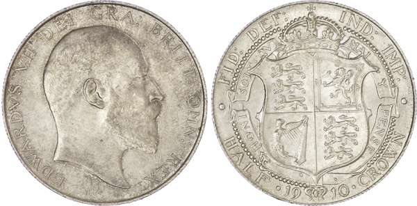 Edward VII (1901-1910), Halfcrown, 1910, bare head left, reverse crowned shield in garter, (S3980, ESC