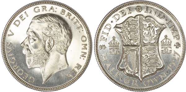George V (1910-1936), Proof Halfcrown, 1927, modified bare head left, reverse crowned shield in Garter