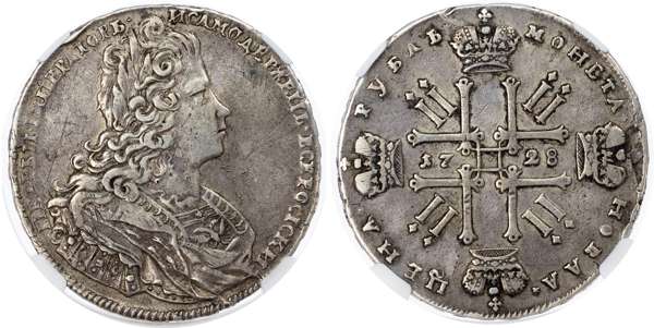 Russia, Empire. Peter II AR Rouble. Kadashevsky mint, 1728.