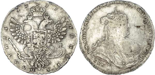 Russia, Empire. Anna Ivanovna AR Poltina (50 Kopeck). St. Petersburg mint, 1739.