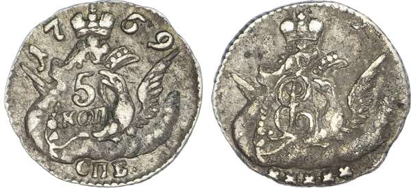 Russia. Elizabeth AG 5 Kopeks. 1759Cnb.