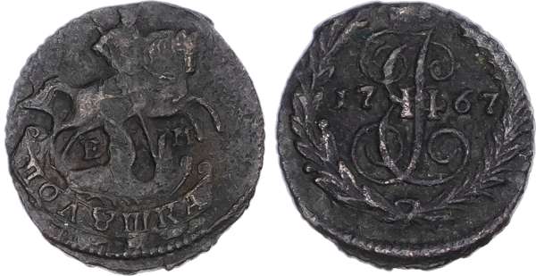 Russia, Empire. Catherine II CU Polushka (1/4 Kopeck). Ekaterinburg mint, 1767