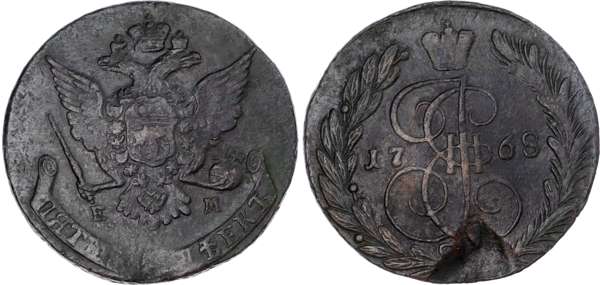 Russia, Empire. Catherine II CU 5 Kopeck. Ekaterinburg mint, 1768.