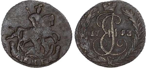 Russia, Empire. Catherine II CU Denga (1/2 Kopeck). Anninskoye mint, 1793.