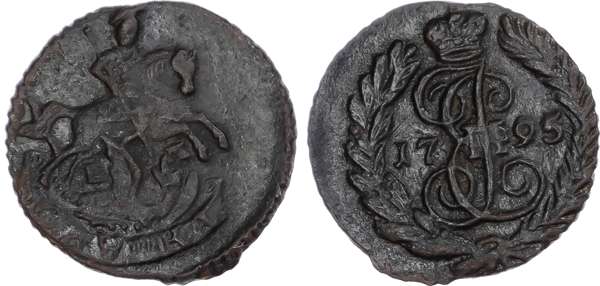Russia, Empire. Catherine II CU Polushka (1/4 Kopeck). Ekaterinburg mint, 1795.