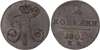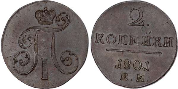 Russia, Empire. Paul I CU 2 Kopeck. Ekaterinburg mint, 1801.