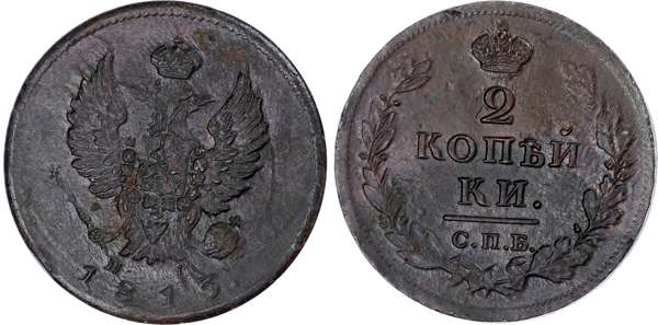 Russia, Empire. Alexander I CU 2 Kopeck. St. Petersburg mint, 1813.