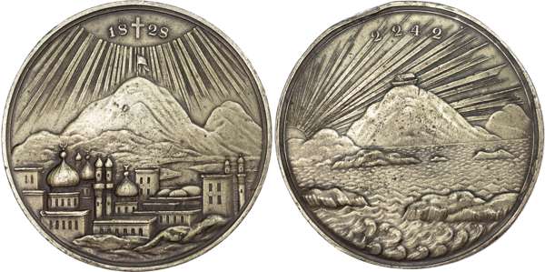 Russia. Nicholai Pavlovich I Zi Medallion, Capture of Yerevan. 1828. 2242 in sun rays above Mt. Ararat, sea of clouds below / 18 ✢28 over mountains and city view. Diakov: 476.1. 177.08g, 62.50mm, 12h.