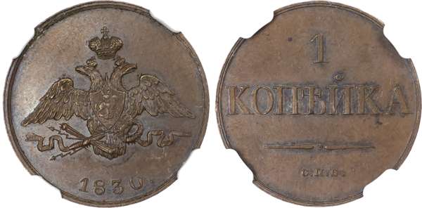 Russia, Empire. Nicholas I CU Pattern Kopeck. St. Petersburg mint, 1830.