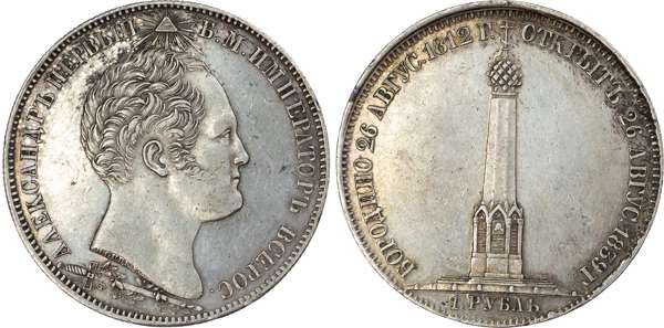 Russia, Empire. Nicholas I AR Rouble. Commemorating the dedication of the Borodino Memorial.St Petersburg mint, 1839.