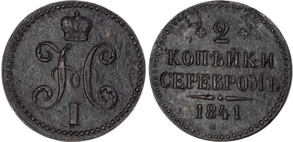Russia, Empire. Nicholas I CU 2 Kopeck. Ekaterinburg mint, 1841.