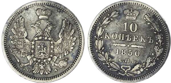 Russia, Empire. Nicholas I AR 10 Kopeck. St. Petersburg mint, 1850. ‡