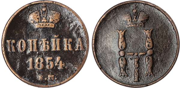 Russia, Empire. Nicholas I CU Kopeck. Ekaterinburg mint, 1854. ‡
