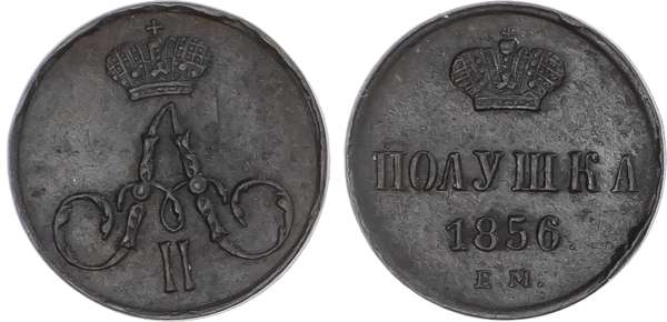 Russia, Empire. Alexander II CU Polushka (1/4 Kopeck). Ekaterinburg mint, 1856. ‡