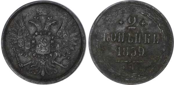 Russia, Empire. Alexander II CU 2 Kopeck. Ekaterinburg mint, 1859. ‡