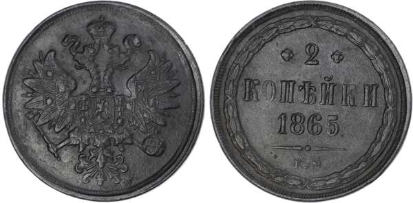 Russia, Empire. Alexander II CU 2 Kopeck. Ekaterinburg mint, 1865. ‡