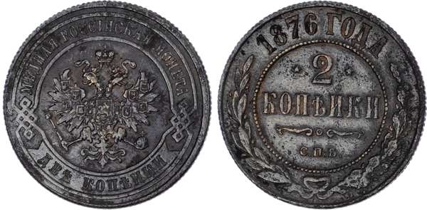 Russia, Empire. Alexander II CU 2 Kopeck. St. Petersburg mint, 1876. ‡