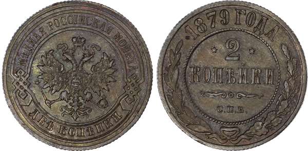 Russia, Empire. Alexander II CU 2 Kopeck. St. Petersburg mint, 1879. ‡
