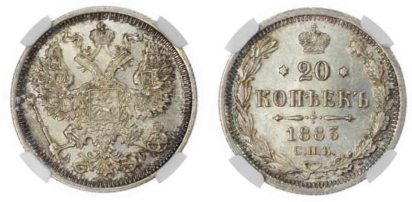 Russia, Empire. Alexander III AR 20 Kopeck. St. Petersburg mint, 1883. ‡
