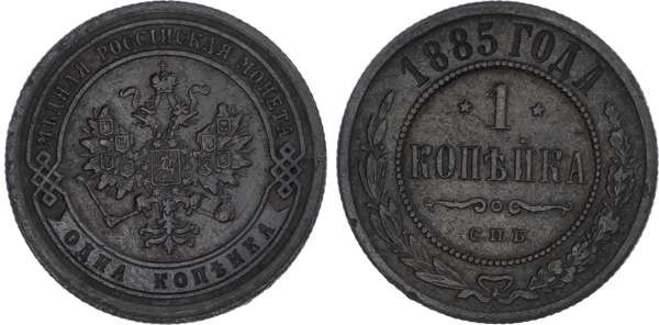 Russia, Empire. Alexander III CU Kopeck. St. Petersburg mint, 1885. ‡