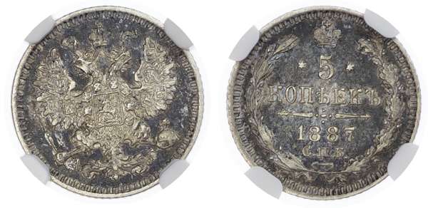 Russia, Empire. Alexander III AR 5 Kopeck. St. Petersburg mint, 1887. ‡
