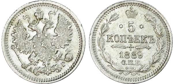 Russia, Empire. Alexander III AR 5 Kopeck. St. Petersburg mint, 1889. ‡