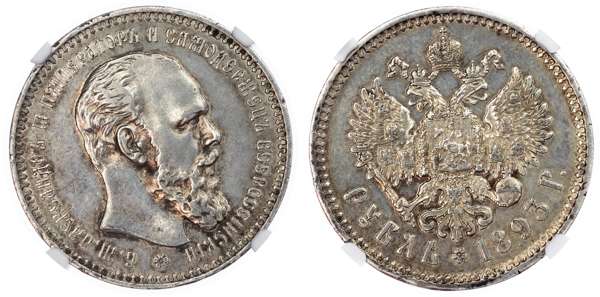 Russia, Empire. Alexander III AR Rouble. St. Petersburg mint, 1893. ‡