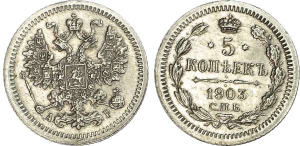 Russia, Empire. Nicholas II AR 5 Kopeck. St. Petersburg mint, 1903. ‡